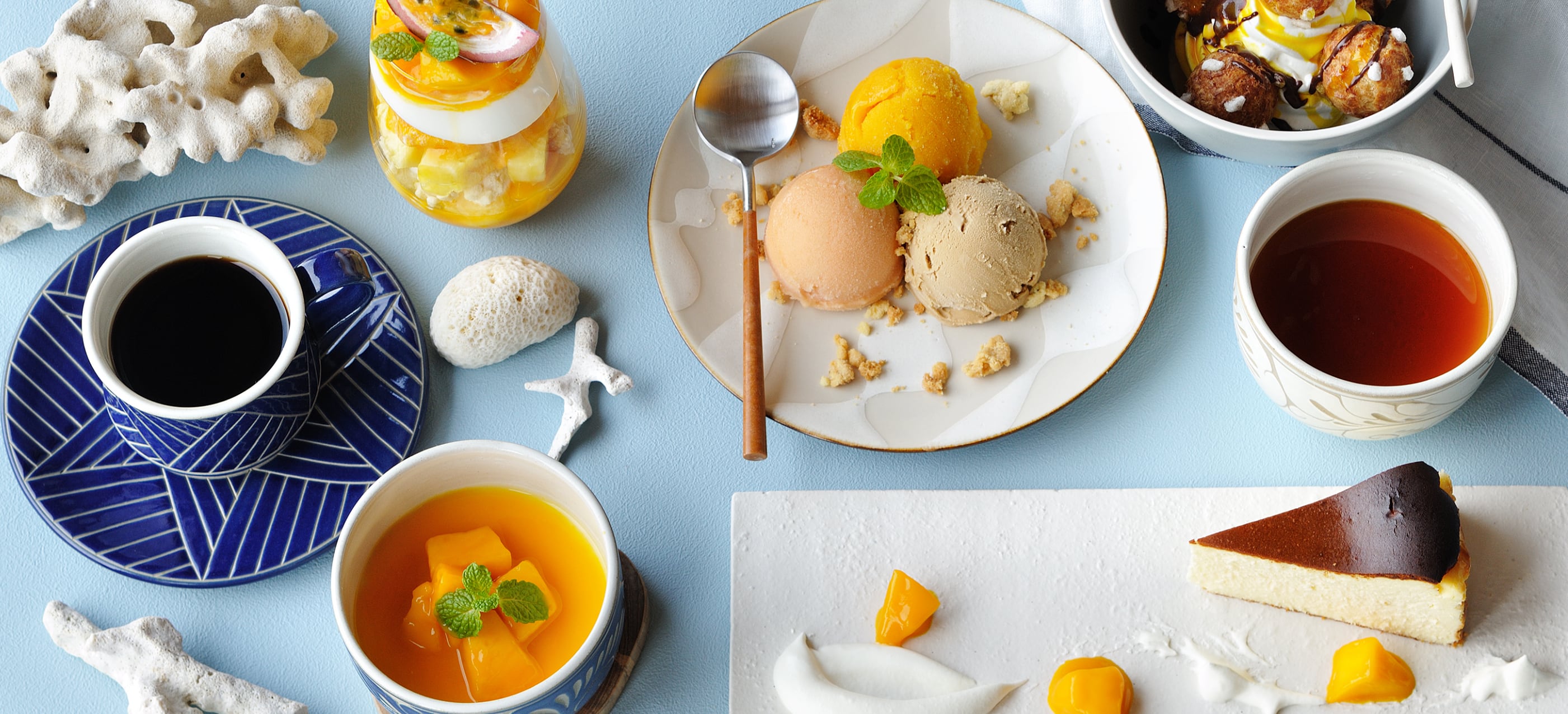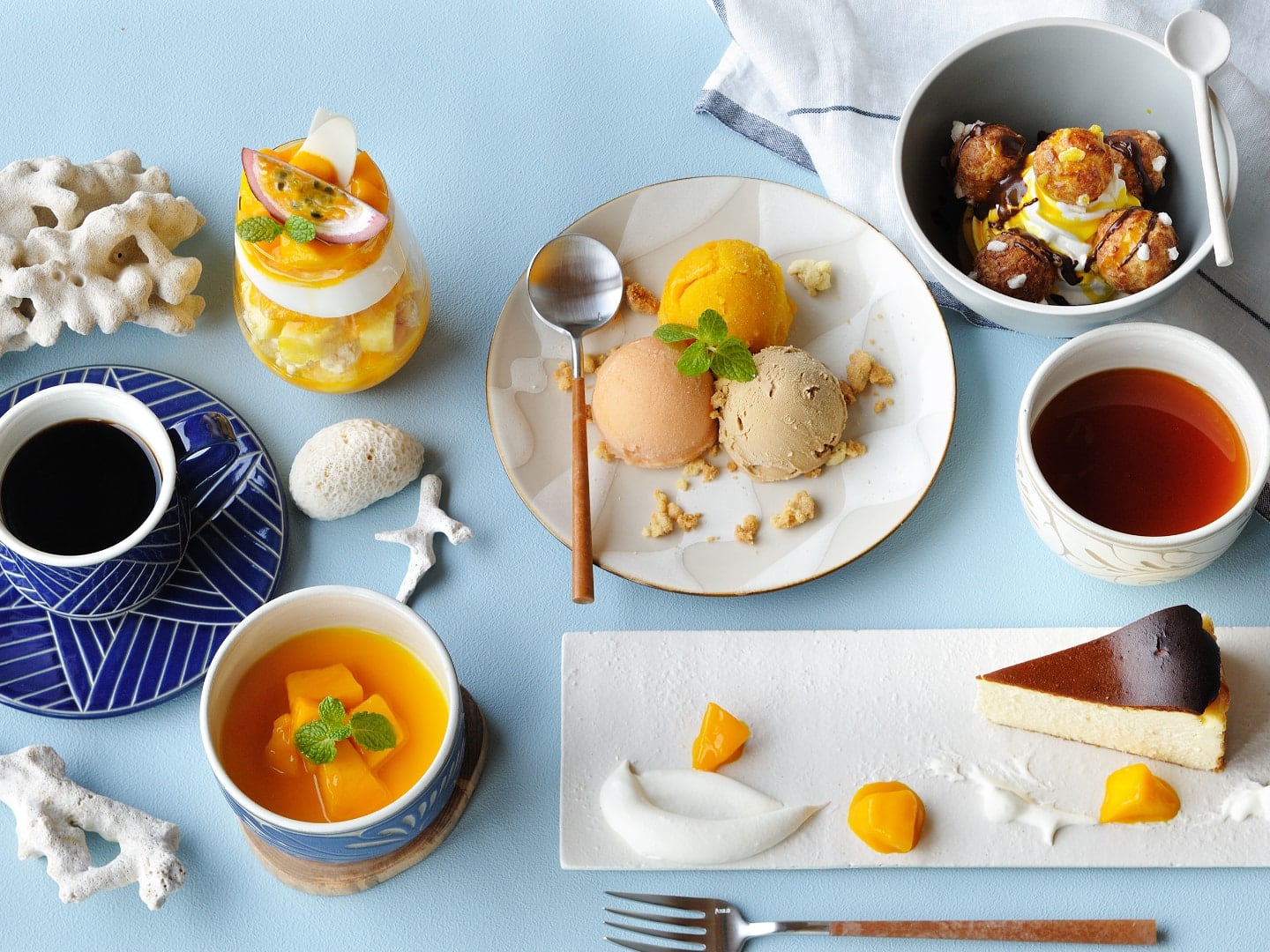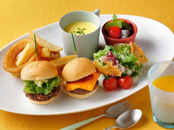 OLU Grill serves original sweets, such as gorgeous fruit parfait with pineapple and passion fruits, rich cheesecake with mango sauce, and so on. Also, the kids' menu, including small hamburgers, soup, and salad, is available.