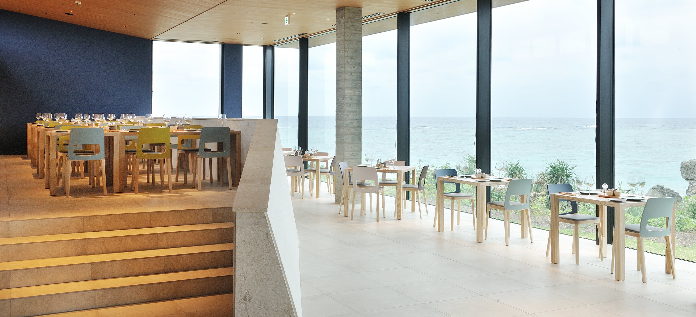 At dining, you can enjoy your meal while gazing at the endless ocean. Enjoy your meal with the changing ocean scenery such as lunch with the shining sea, beautiful sunset color, and dinner at the light of the lighthouse.