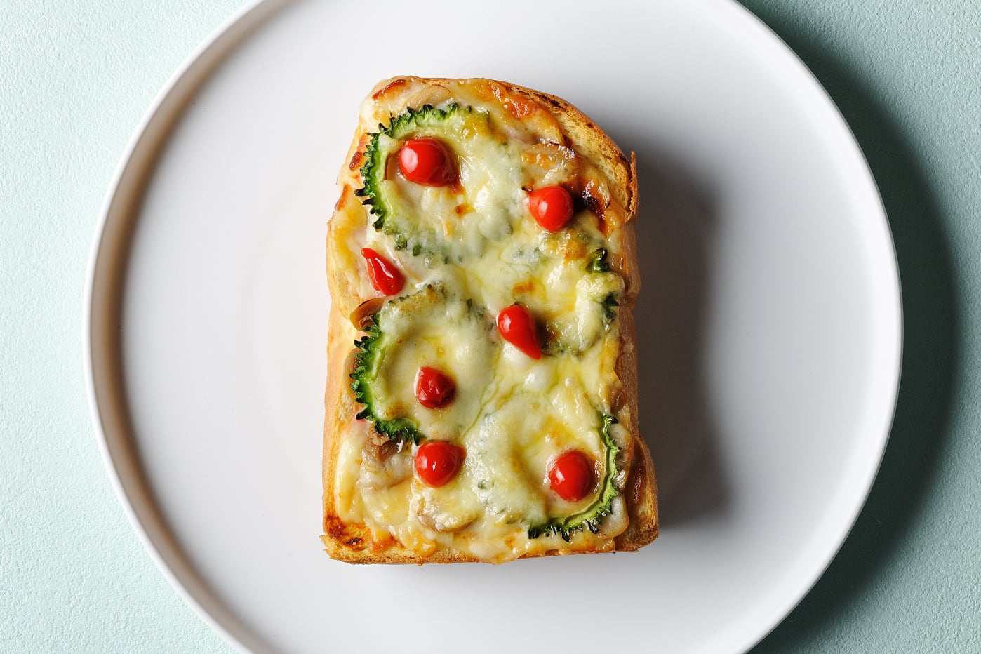 たっぷりのチーズに、ゴーヤーの苦みとスイティードロップのマイルドな辛みがアクセントのピザトーストは満足感もたっぷり。しっかり味わいたいランチや、シェアして味わうのもおすすめです。