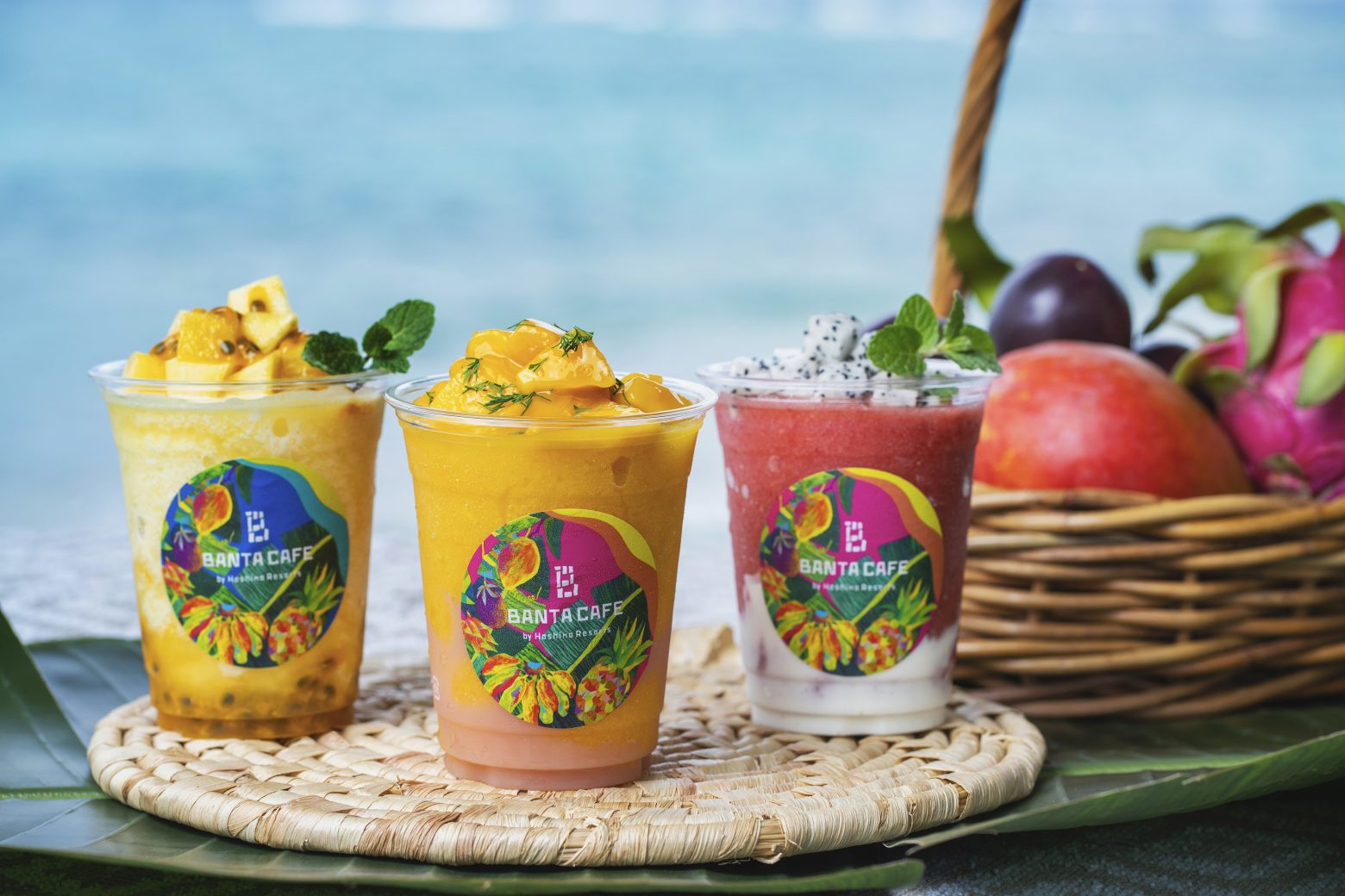 のど越し爽やかなフローズンドリンクに、濃厚なフルーツソースとごろごろとした果肉を贅沢に合わせました。ラインナップは、沖縄の夏を彩るマンゴー、パイン、ドラゴンフルーツをベースにした3種類です。期間中はそれぞれが最も旬の時期に登場します。